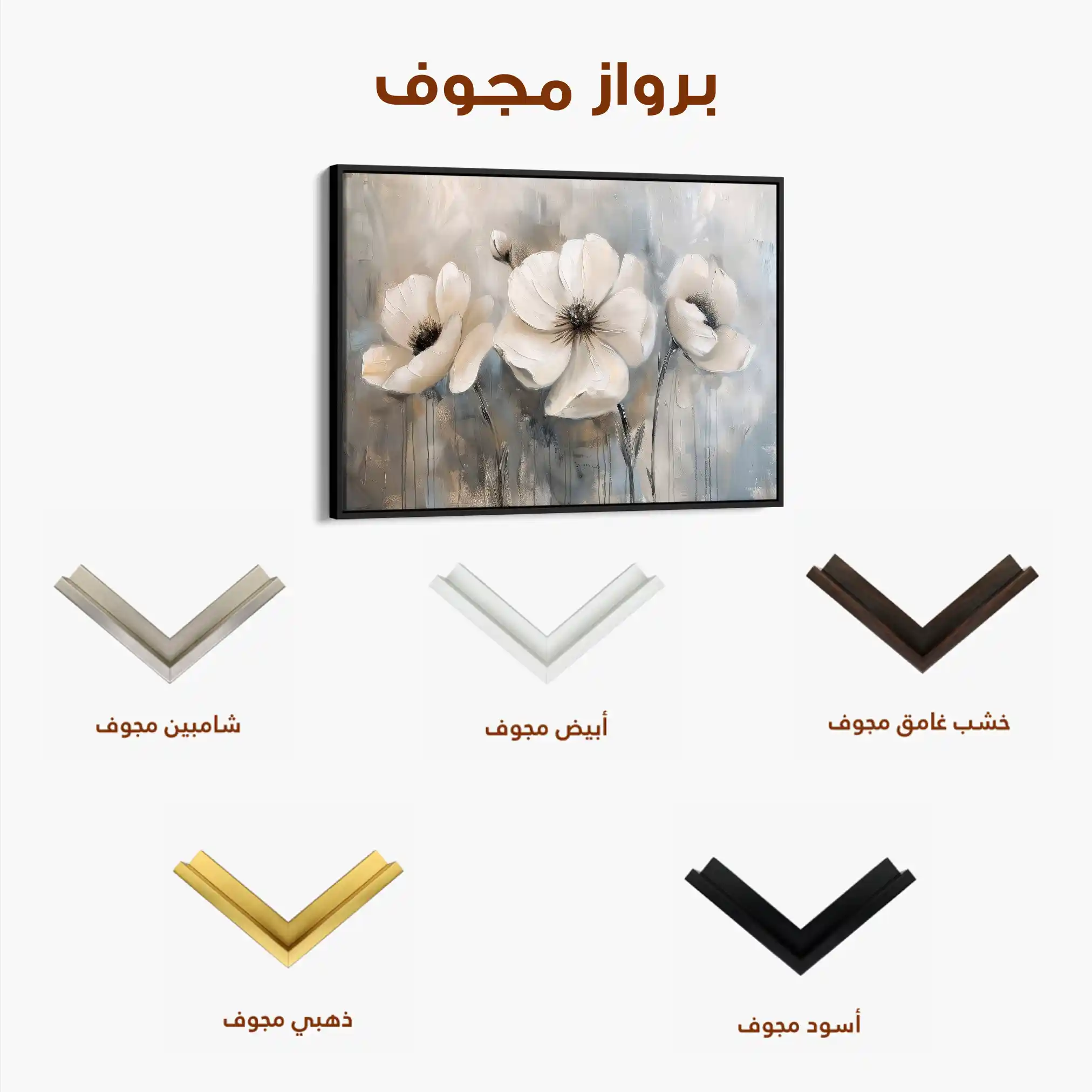• الإطار (مجوف): إطار نحيف بفراغ رفيع يحيط باللوحة ليُبرز الحافة ويمنح ظلاً خفيفاً وإحساس صالات العرض؛ يصل جاهزاً للتعليق.