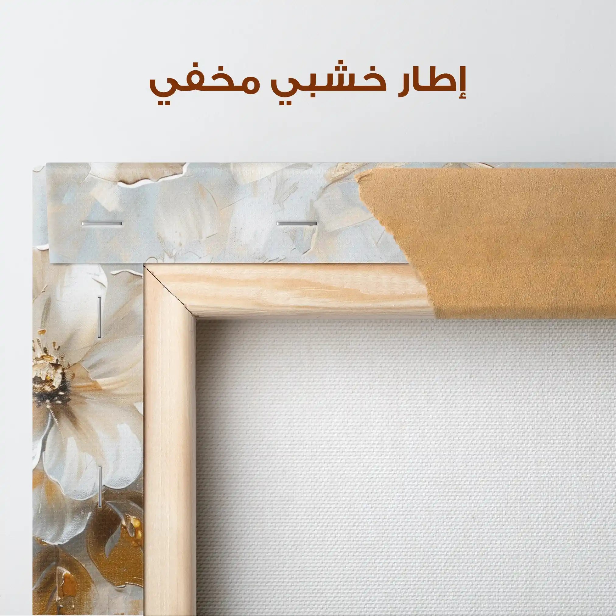 • الإطار (مجوف): إطار نحيف بفراغ رفيع يحيط باللوحة ليُبرز الحافة ويمنح ظلاً خفيفاً وإحساس صالات العرض؛ يصل جاهزاً للتعليق.