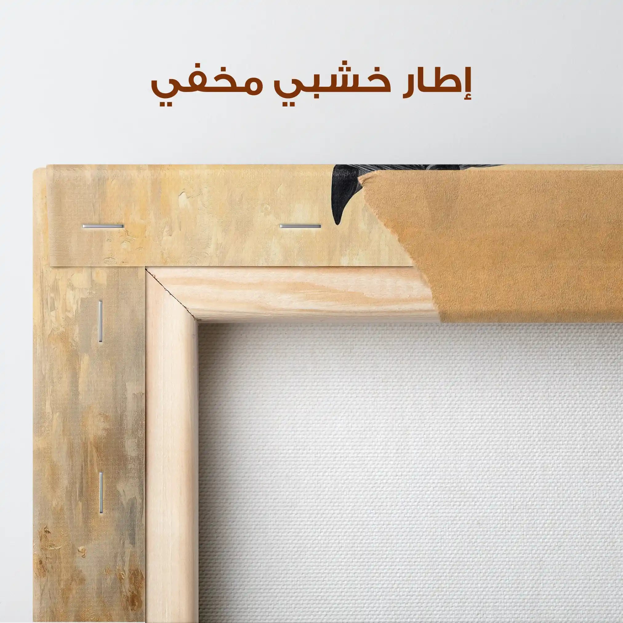 • الإطار (مجوف): إطار نحيف بفراغ رفيع يحيط باللوحة ليُبرز الحافة ويمنح ظلاً خفيفاً وإحساس صالات العرض؛ يصل جاهزاً للتعليق.