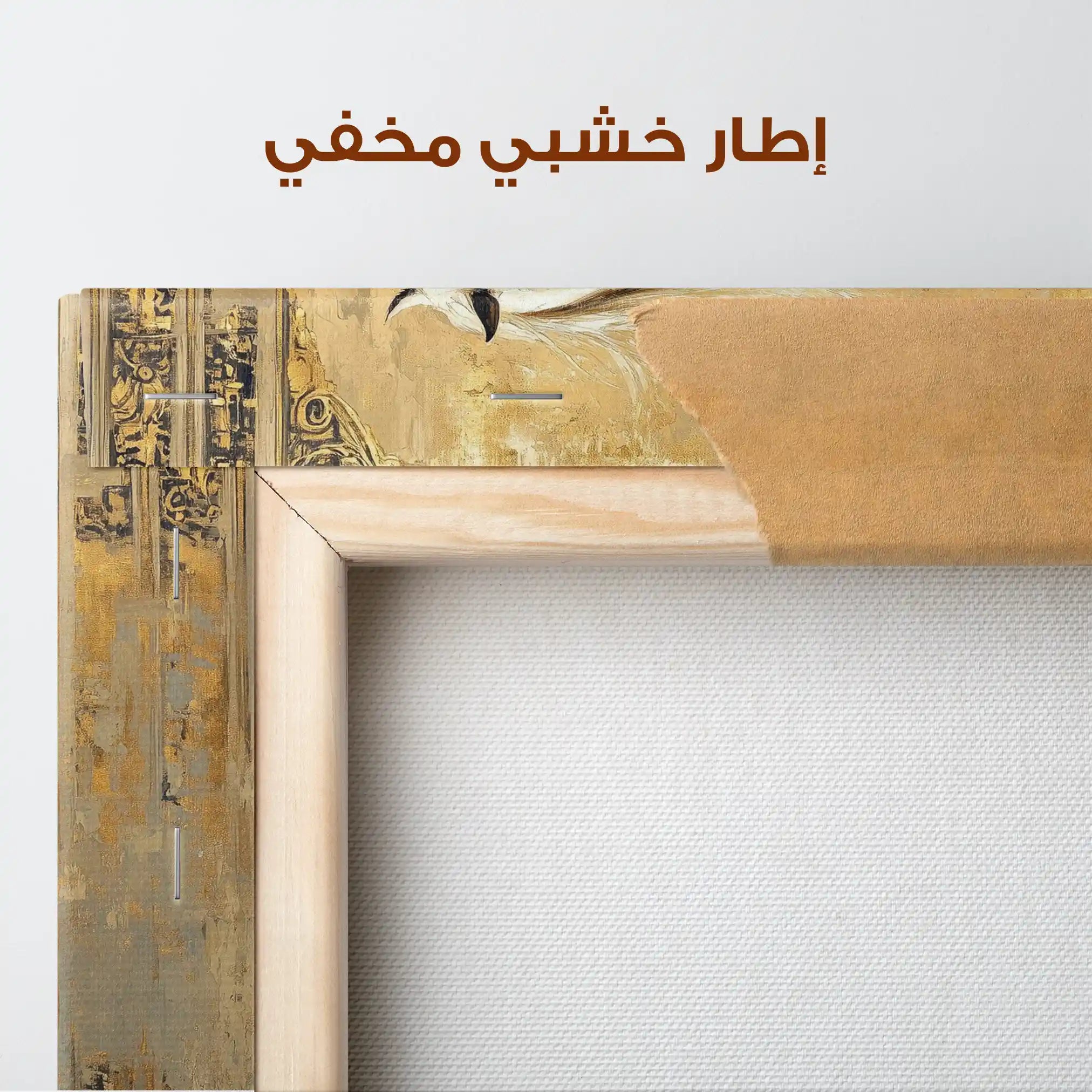 • الإطار (مجوف): إطار نحيف بفراغ رفيع يحيط باللوحة ليُبرز الحافة ويمنح ظلاً خفيفاً وإحساس صالات العرض؛ يصل جاهزاً للتعليق.