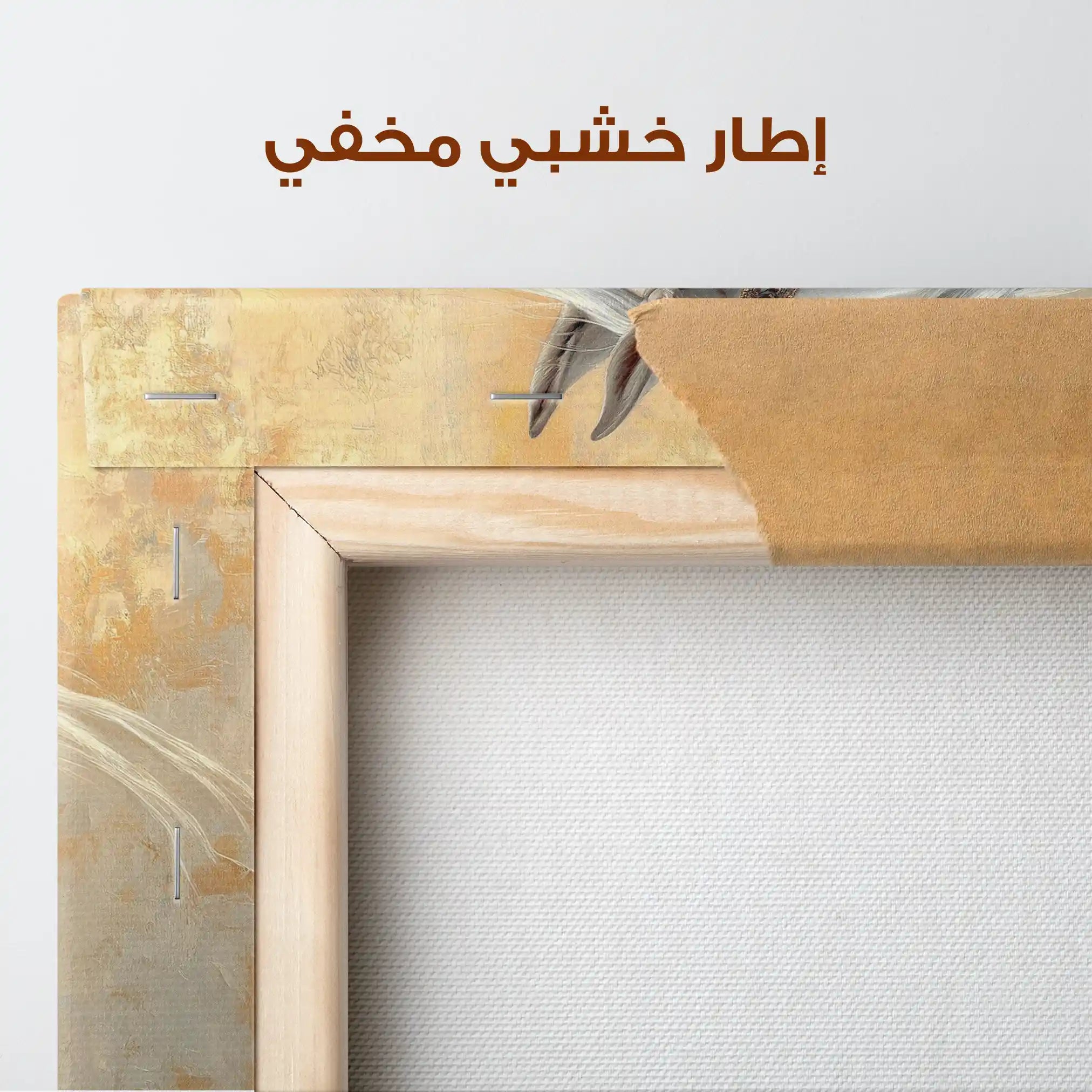 • الإطار (مجوف): إطار نحيف بفراغ رفيع يحيط باللوحة ليُبرز الحافة ويمنح ظلاً خفيفاً وإحساس صالات العرض؛ يصل جاهزاً للتعليق.