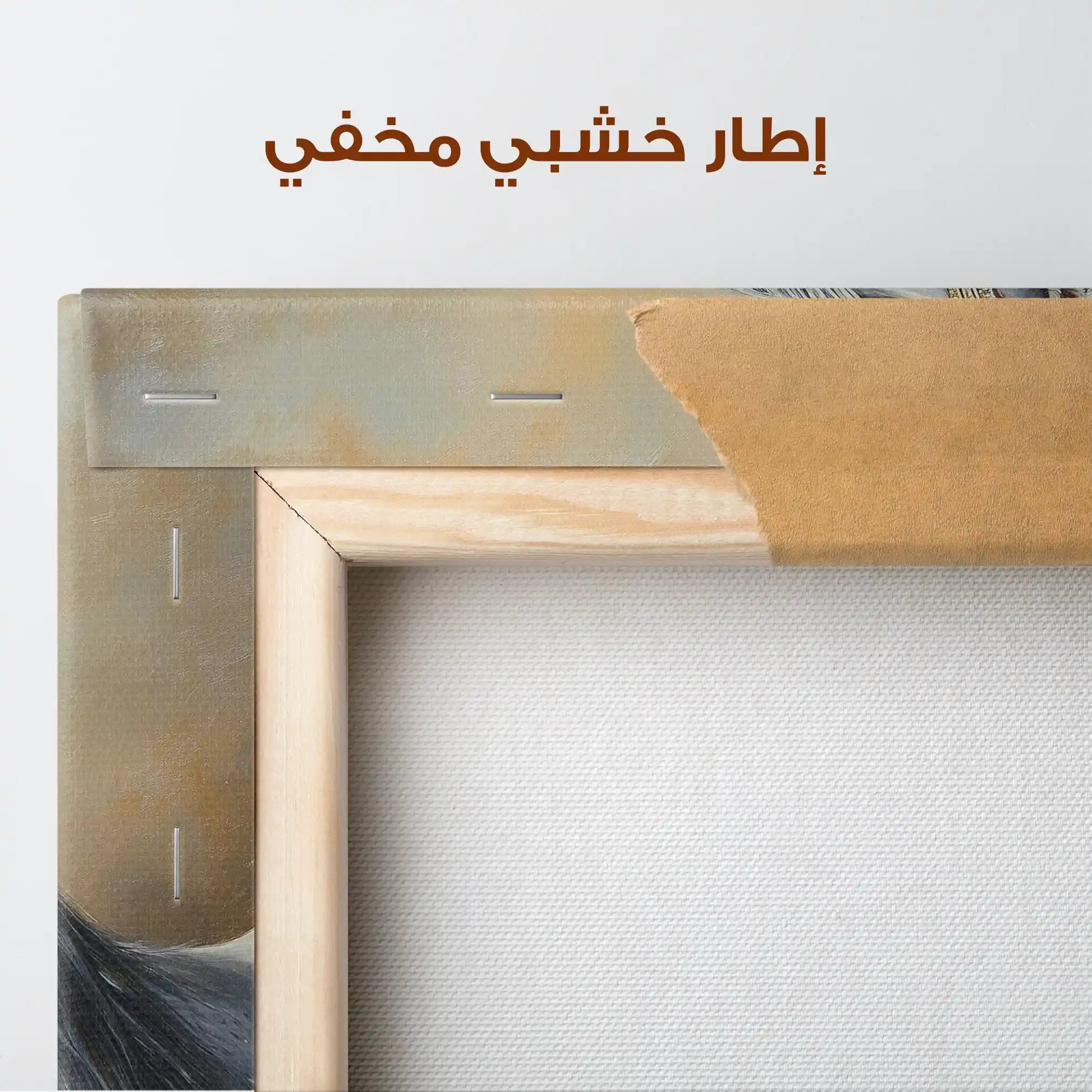 • الإطار (مجوف): إطار نحيف بفراغ رفيع يحيط باللوحة ليُبرز الحافة ويمنح ظلاً خفيفاً وإحساس صالات العرض؛ يصل جاهزاً للتعليق.