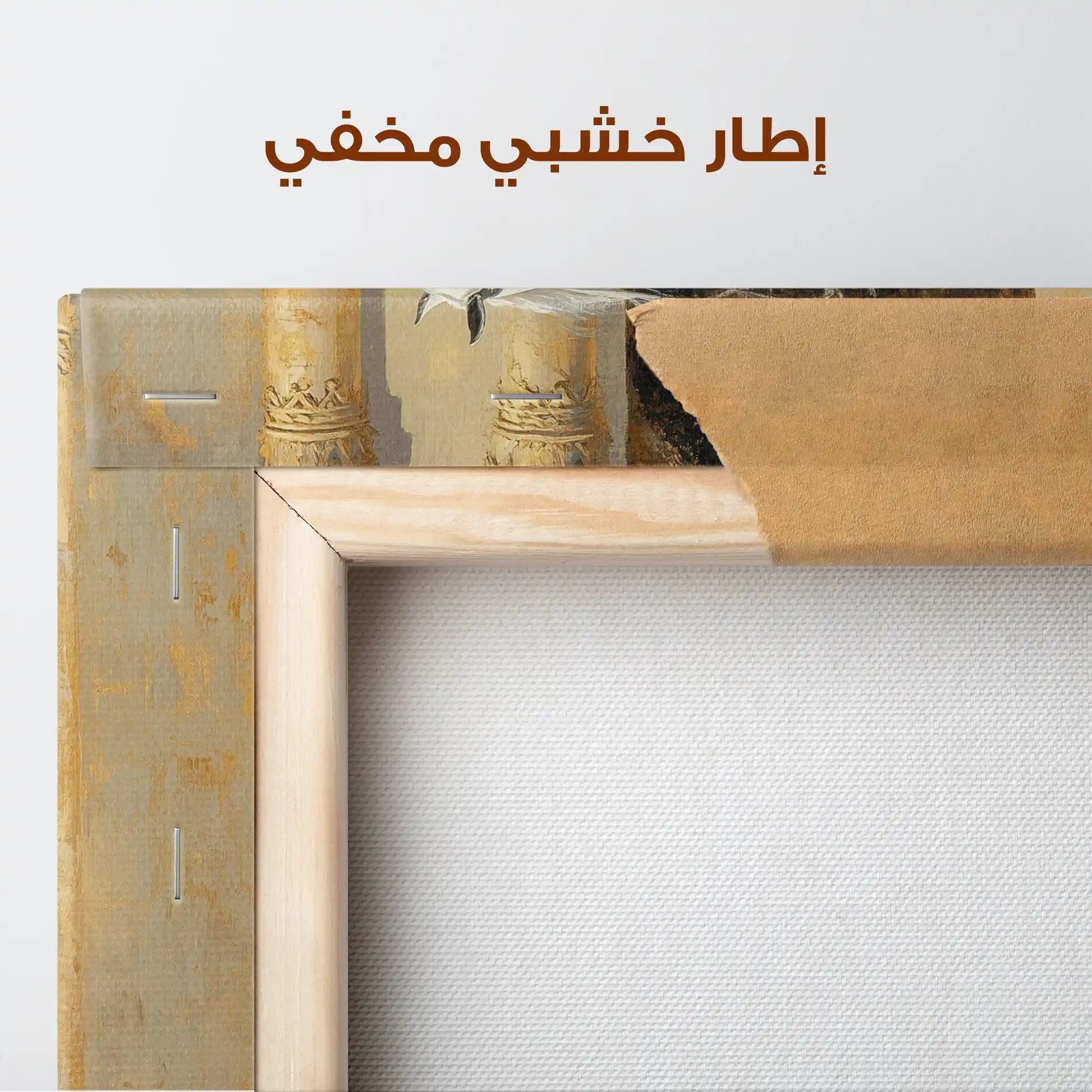• الإطار (مجوف): إطار نحيف بفراغ رفيع يحيط باللوحة ليُبرز الحافة ويمنح ظلاً خفيفاً وإحساس صالات العرض؛ يصل جاهزاً للتعليق.