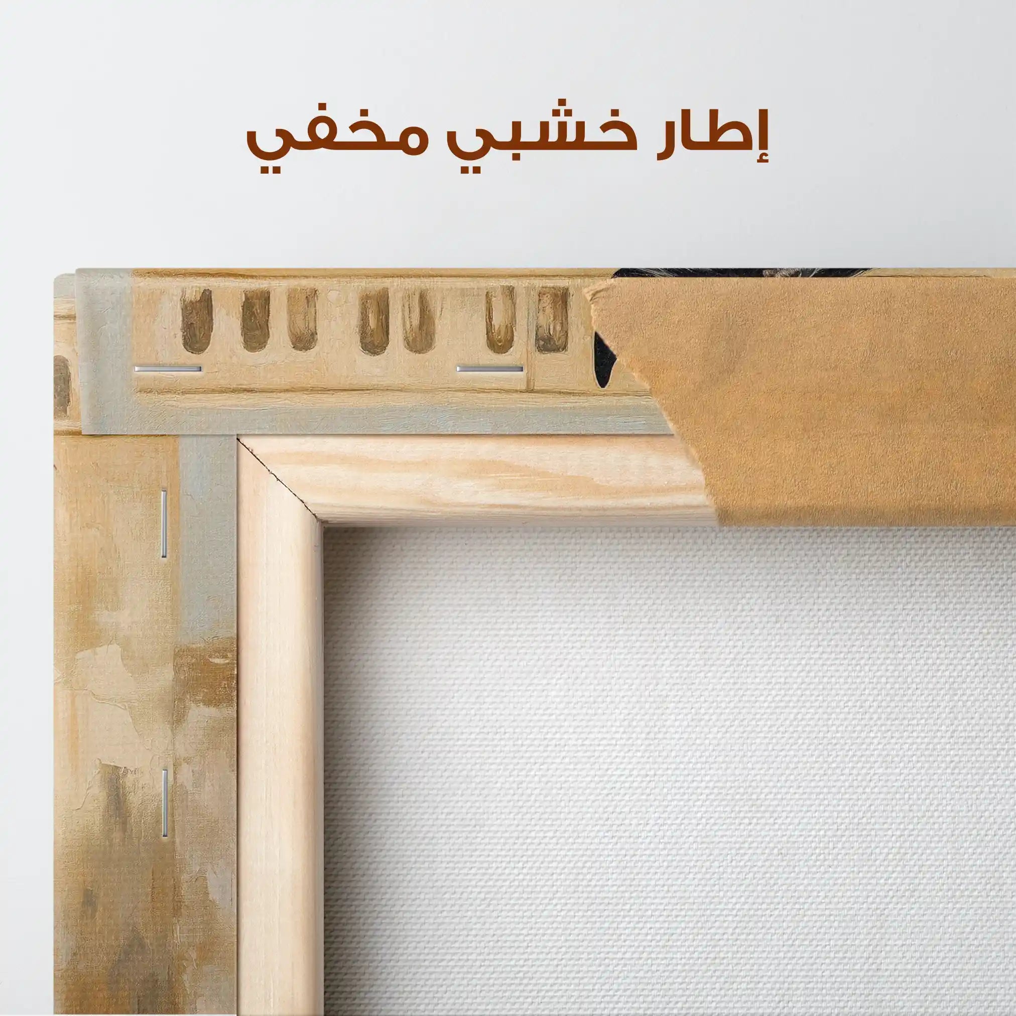 • الإطار (مجوف): إطار نحيف بفراغ رفيع يحيط باللوحة ليُبرز الحافة ويمنح ظلاً خفيفاً وإحساس صالات العرض؛ يصل جاهزاً للتعليق.