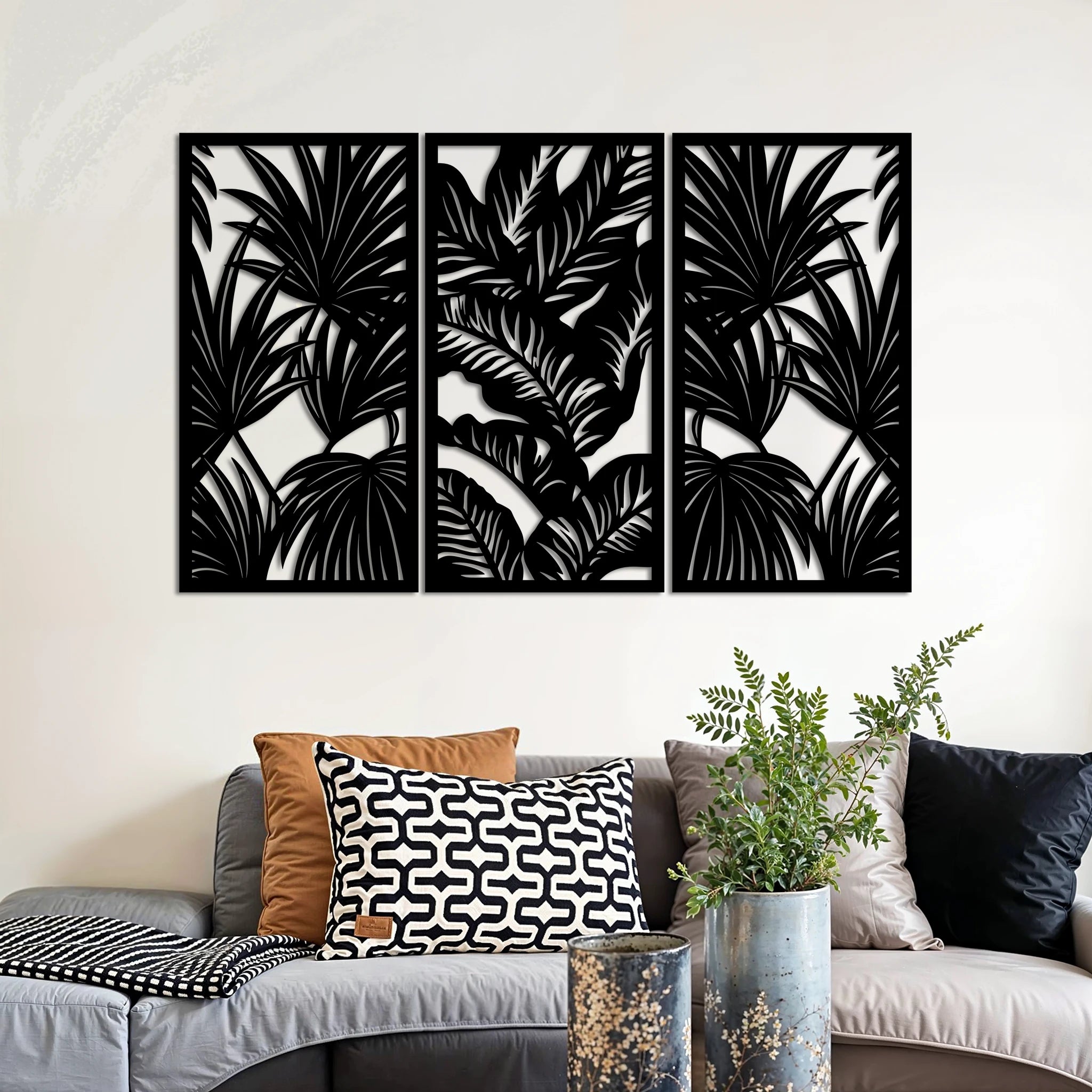 Modern Tropical Leaves Metal Wall Art Set 39 × 75 cm / Black