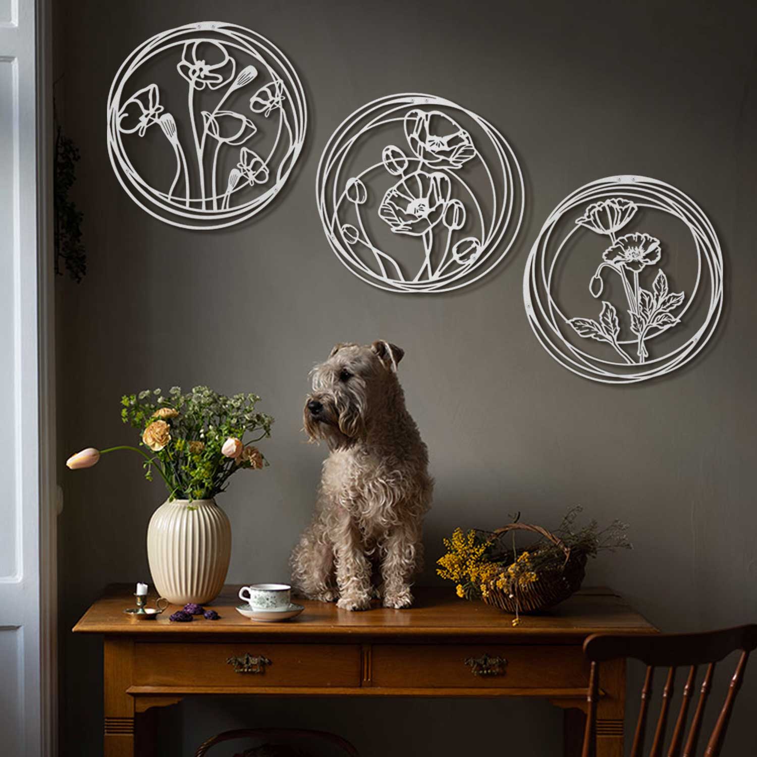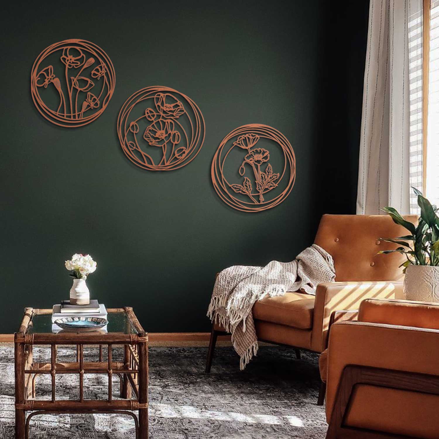 مجموعة لوحات الورد بشكل دائري من المعدن