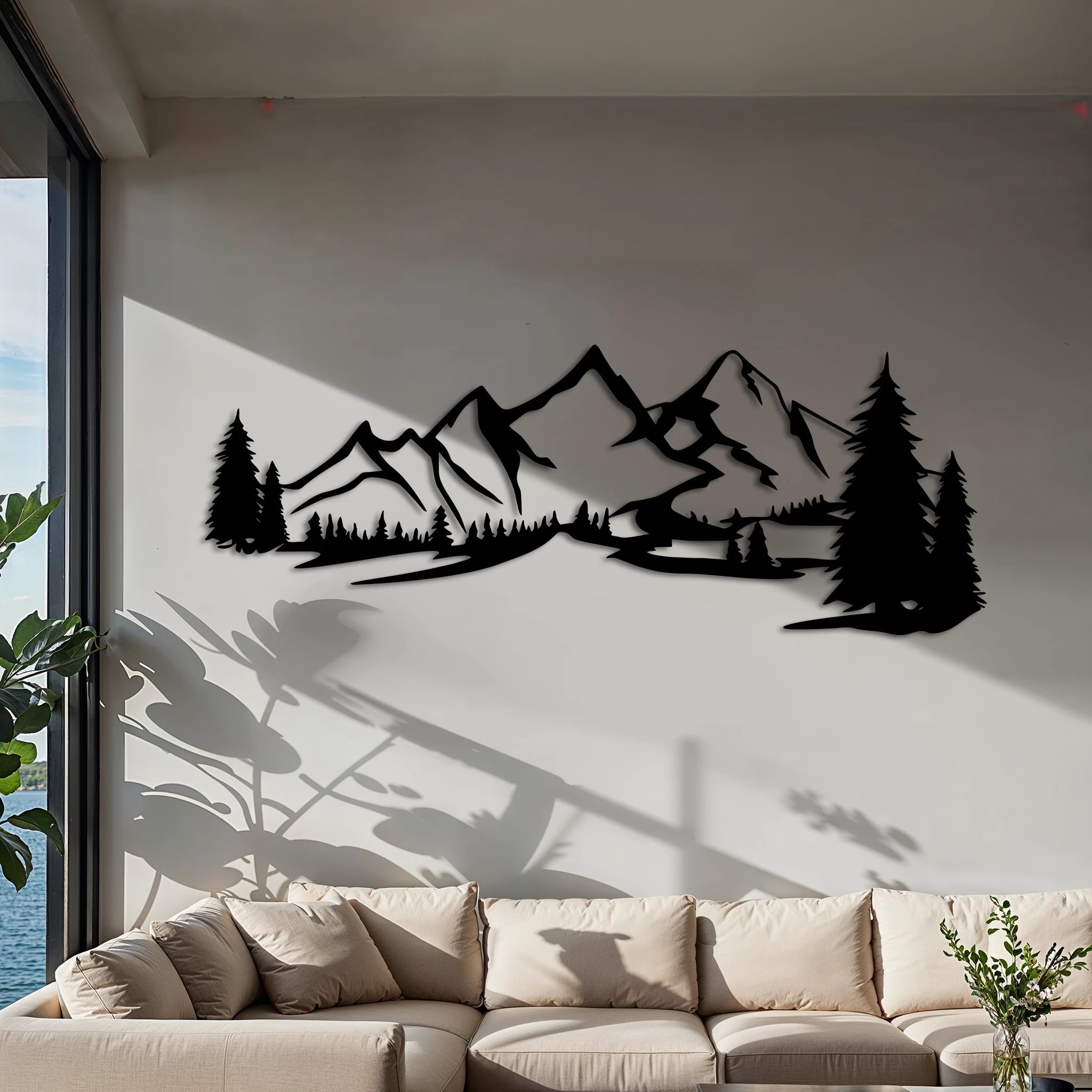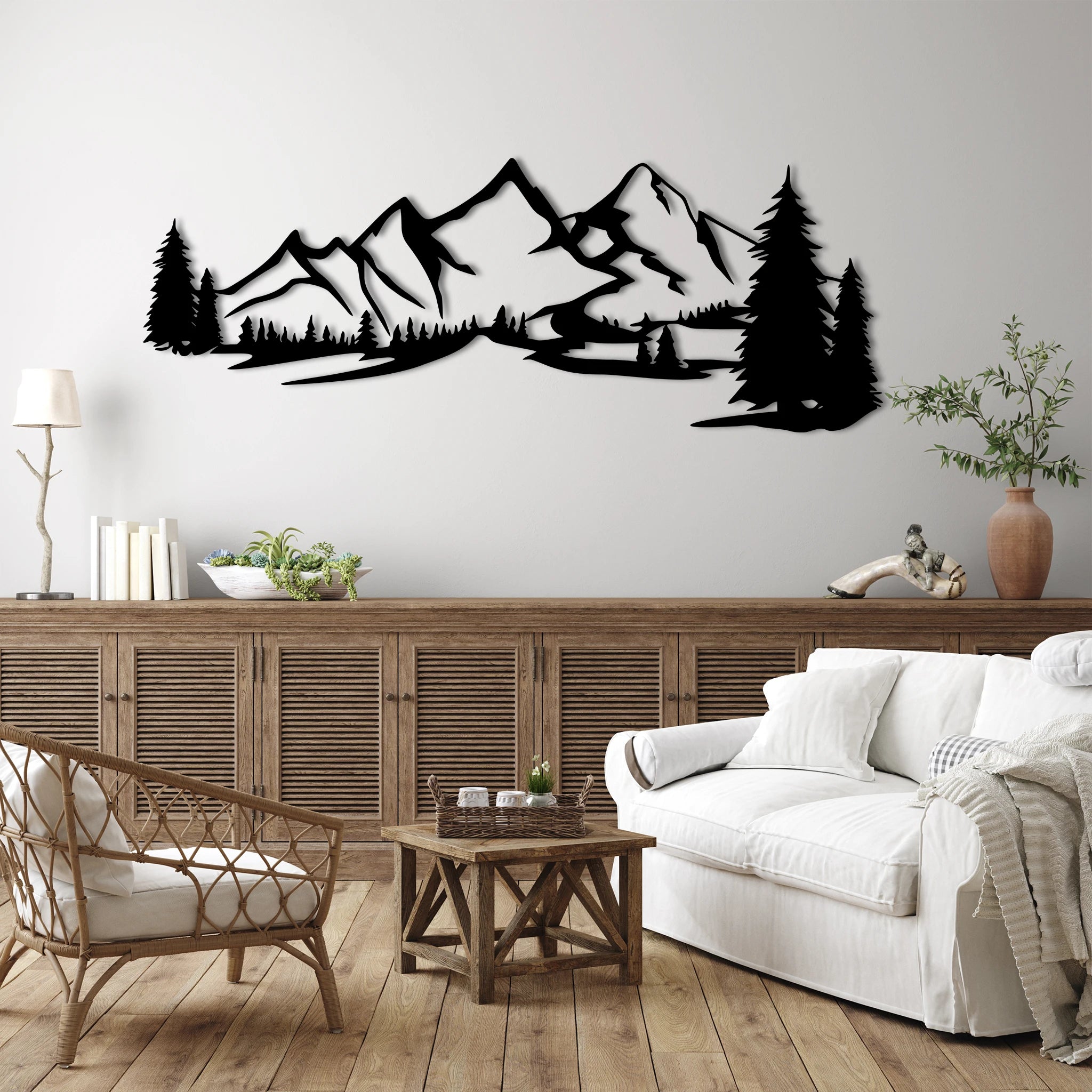 Bring the serene beauty of the great outdoors into your home with this Majestic Rustic Mountain Pine Metal Wall Art. The stunning mountain landscape and detailed pine motifs are expertly crafted to create a naturally rustic ambiance, perfect for any space seeking a touch of wilderness.