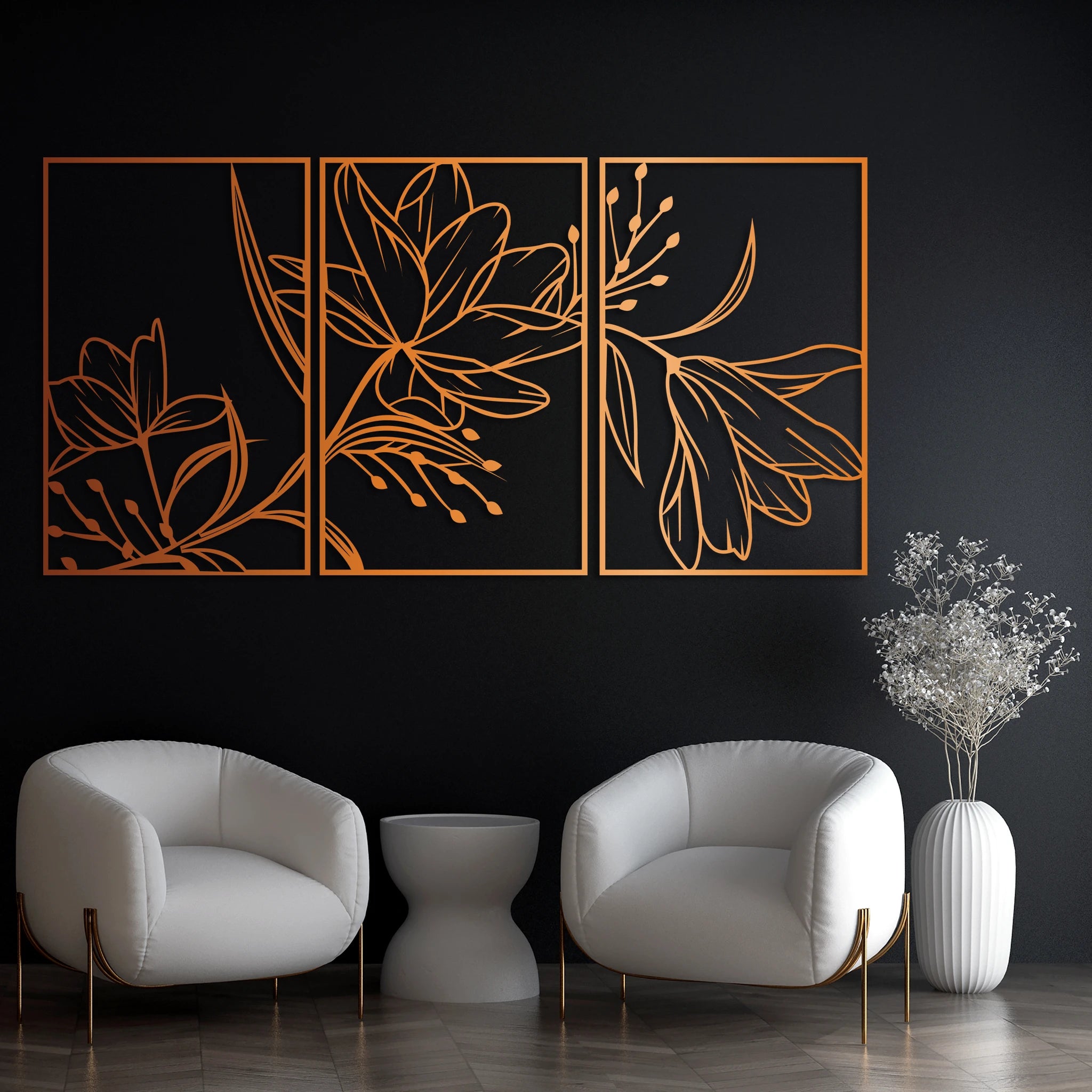 Bring elegant floral artistry to your interiors with this sculptural Lily Flower Metal Wall Art Set. Each piece is expertly crafted for stunning detail and graceful form, making it a sophisticated centerpiece for living spaces, bedrooms, or entryways.