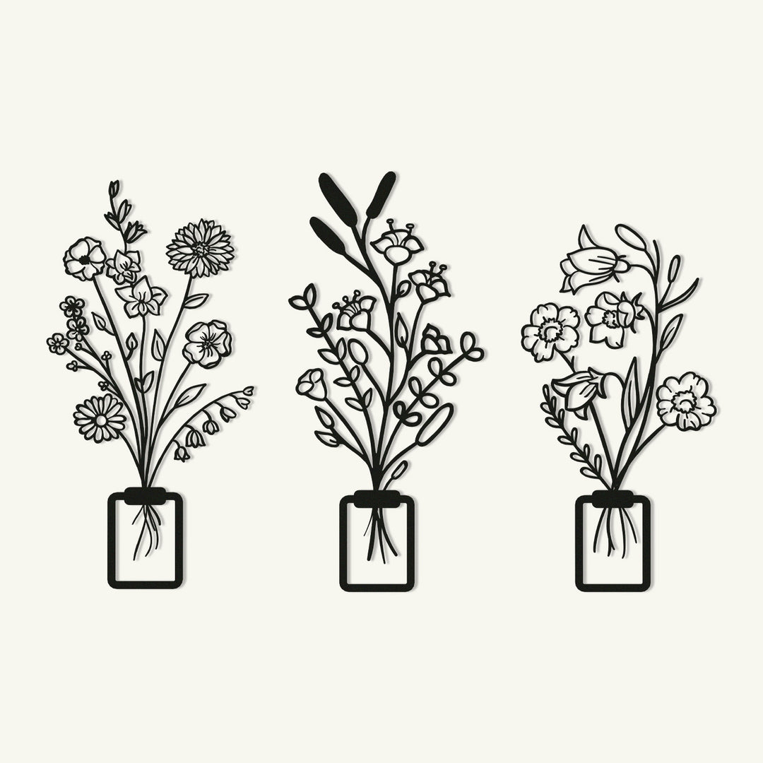 مجموعة لوحات الورد ثلاثية الابعاد من المعدن