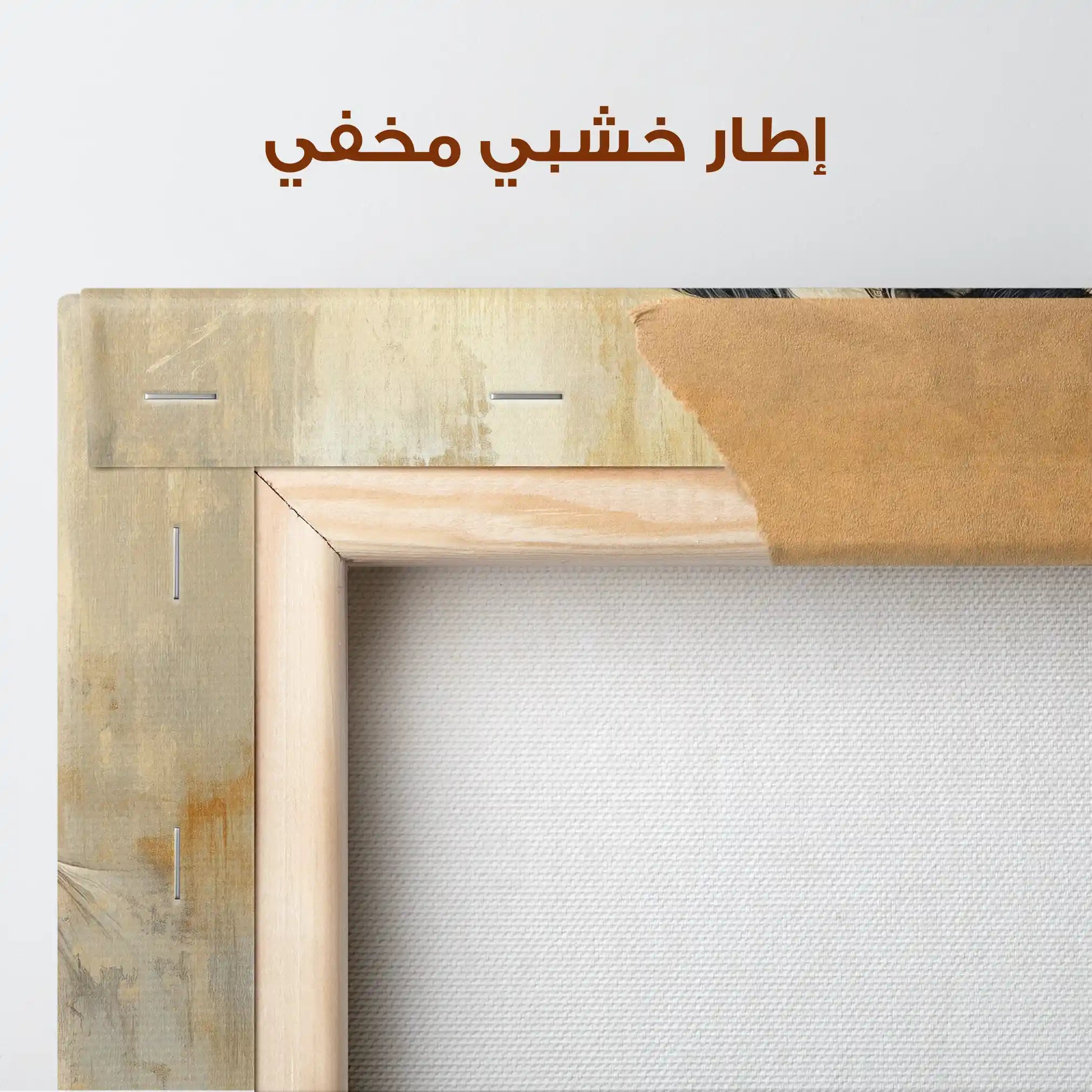 • الإطار (مجوف): إطار نحيف بفراغ رفيع يحيط باللوحة ليُبرز الحافة ويمنح ظلاً خفيفاً وإحساس صالات العرض؛ يصل جاهزاً للتعليق.