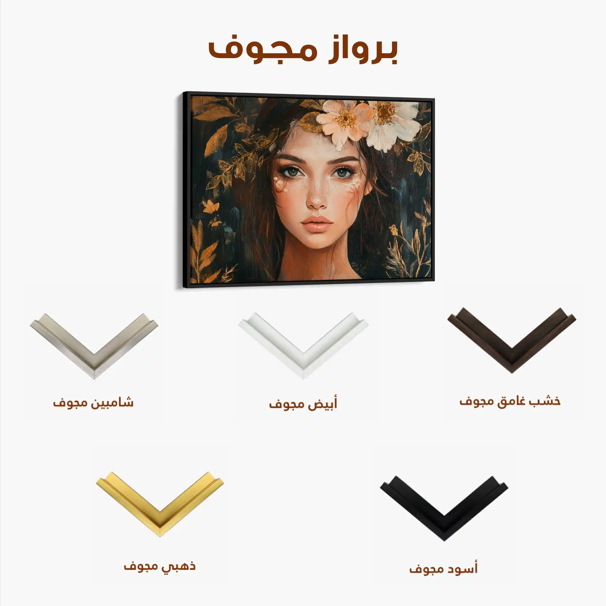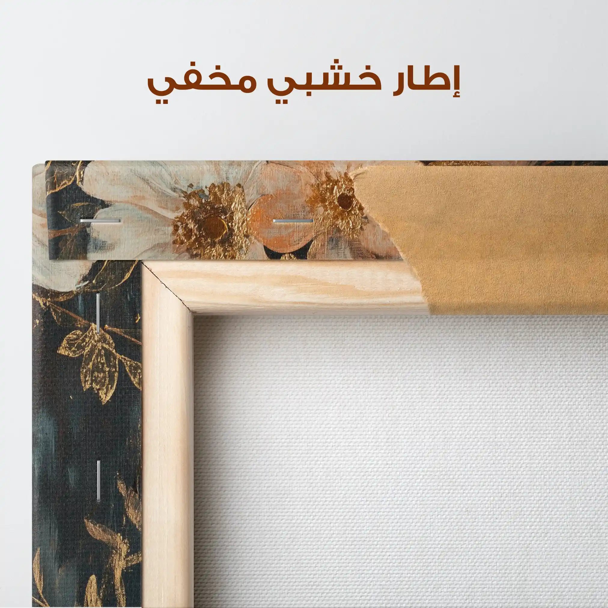 • الإطار (مجوف): إطار نحيف بفراغ رفيع يحيط باللوحة ليُبرز الحافة ويمنح ظلاً خفيفاً وإحساس صالات العرض؛ يصل جاهزاً للتعليق.