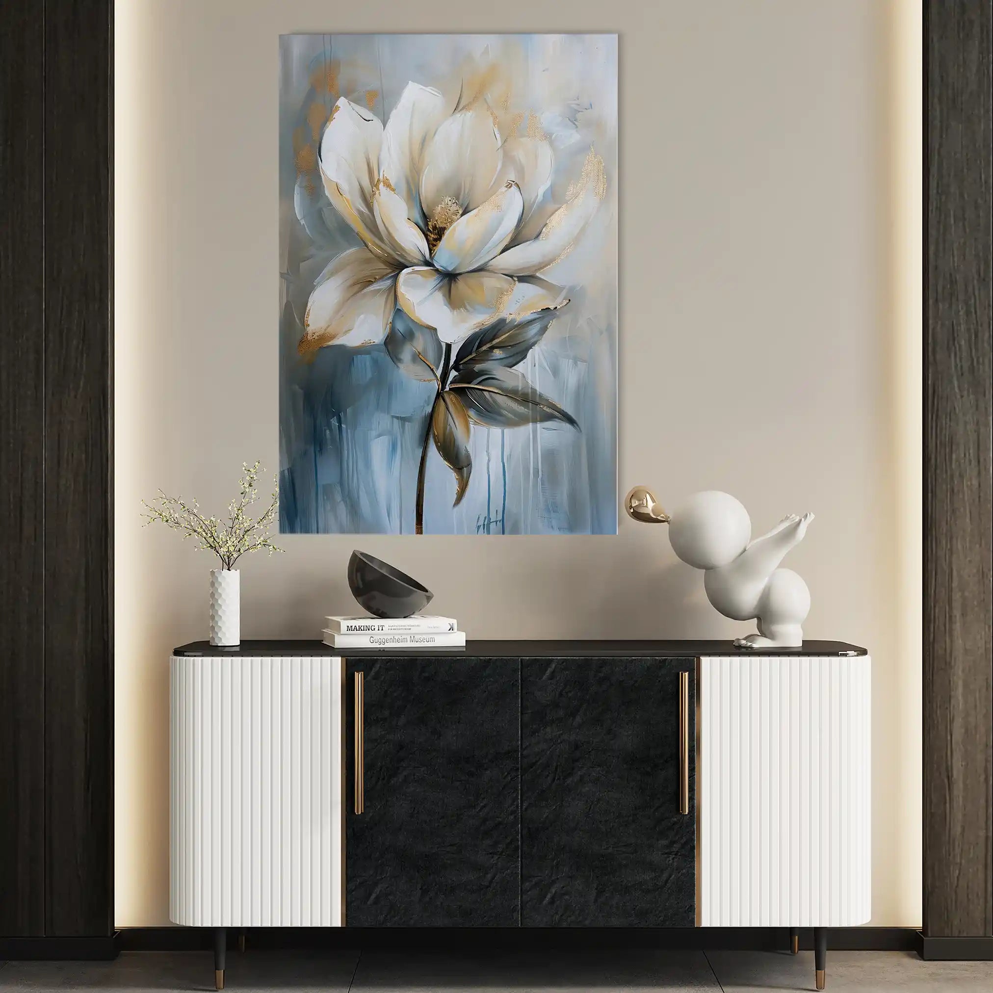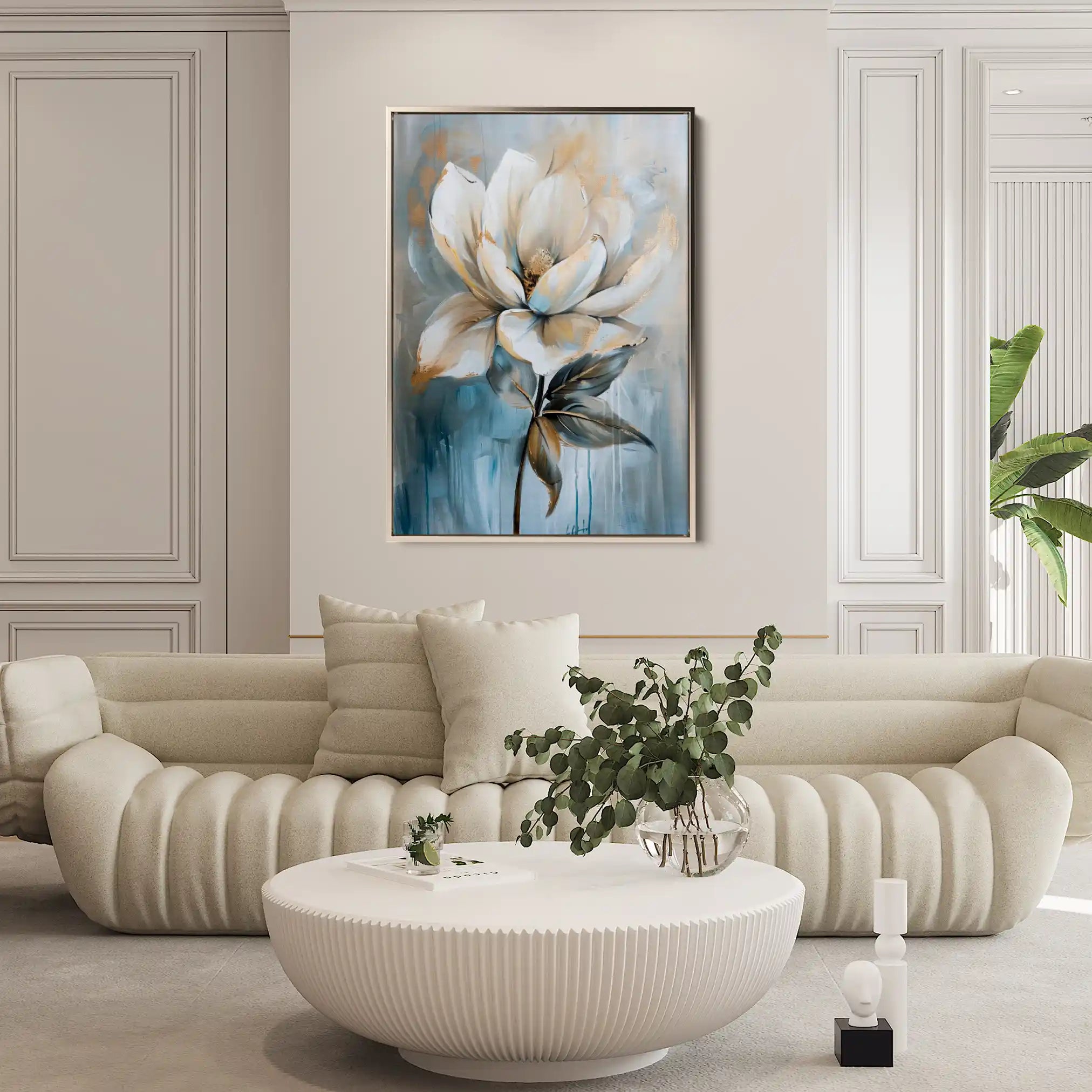 Modern wall art with quiet luxury. High-definition giclée printing on premium artistic leather, set in a slim floater frame—clean, calm, ready to hang.